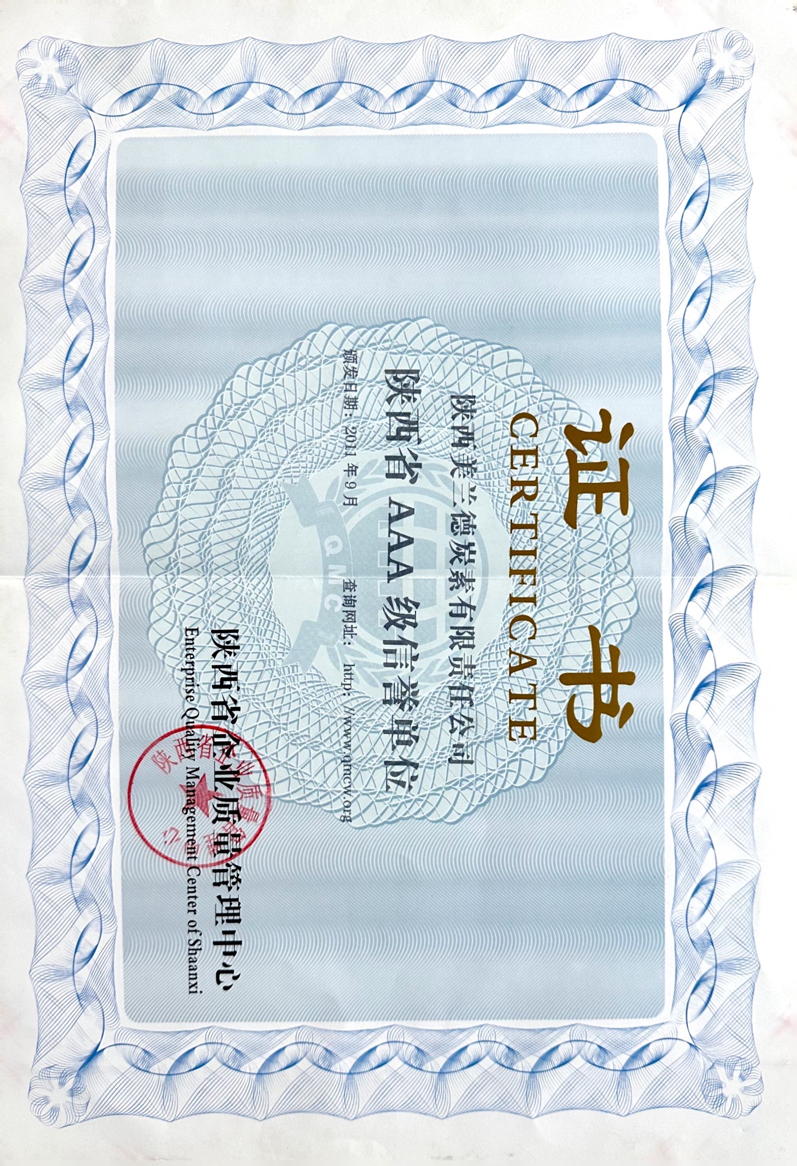 榮獲陜西省質(zhì)量管理中心授予陜西省AAA級信譽(yù)單位;
